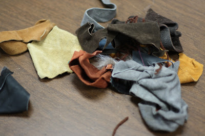 This is a fun way to use leather and fabric scraps. It helps to build critical fine motor skills and a child's capacity to make decisions about design, size, portion, and function of the leather/fabric scraps they select.