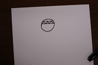 Draw a circle for the head. Add two straight lines for the headband.