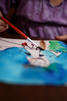 The final step is to watercolor the picture. Using sharpies allows for this final step.