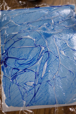 Step Two: Place a piece of plastic wrap on top of the wet wash. Squish the plastic to form creases.