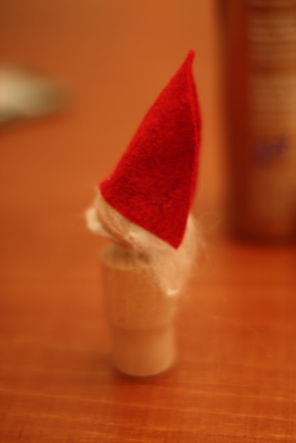 Optional: Put a generous dot of glue on side of head and press cap down. Roll a bit of roving into a ball and glue to tip of cap.