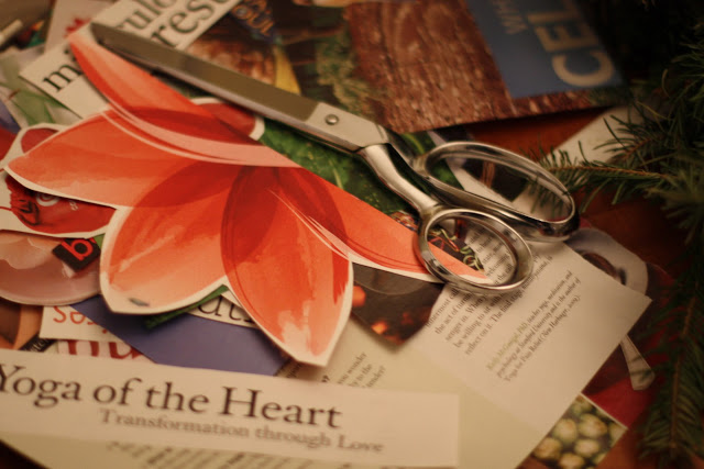 Gathering images and words for the notebook: The best method I have found is to quickly flip through a few magazines and pick words and images that speak to me. I do not think about it. It is like brainstorming. I will put these in a ziplock bag to use throughout the twelve nights.