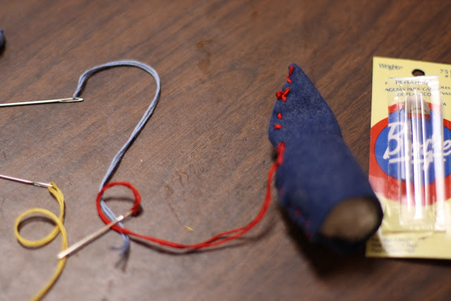To sew this little elf, use the whip stitch. I double the thread and knot the ends.
