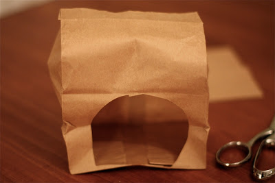 To make the paper sack den cut off 2 1/2 to 3 inches of the brown bag.