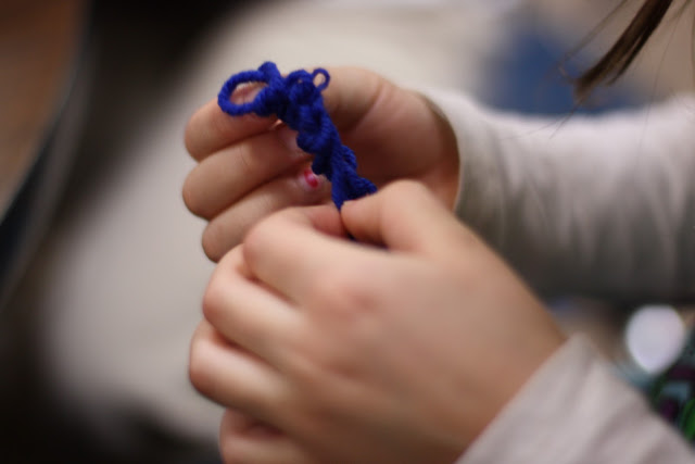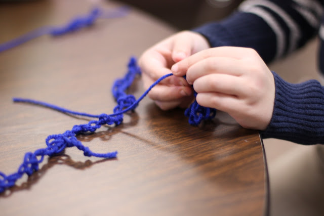 This is such a great skill to teach children. It teaches rhythm, eye/hand coordination, and a deeply refined level of fine motor skill. One of my students this year has not been overly excited about any project. After learning how to do simple finger knitting – she said repeatedly – “I love finger knitting!! I love it!” There is such a feeling of accomplishment!
