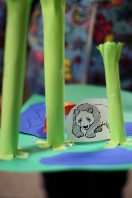 During our China unit we study the panda bear and learn a bit about it's life cycle. The children love seeing the newborn panda photos – so pink and appears hairless! I think it is important to have the children create the habitat of the animal we are studying. It brings multiple sensory learning which gives ownership to the knowledge they have. It is also a great demonstration of what they have learned. Finally, it gives a tool of conversation at home – that they can show the family and tell them what they have learned!