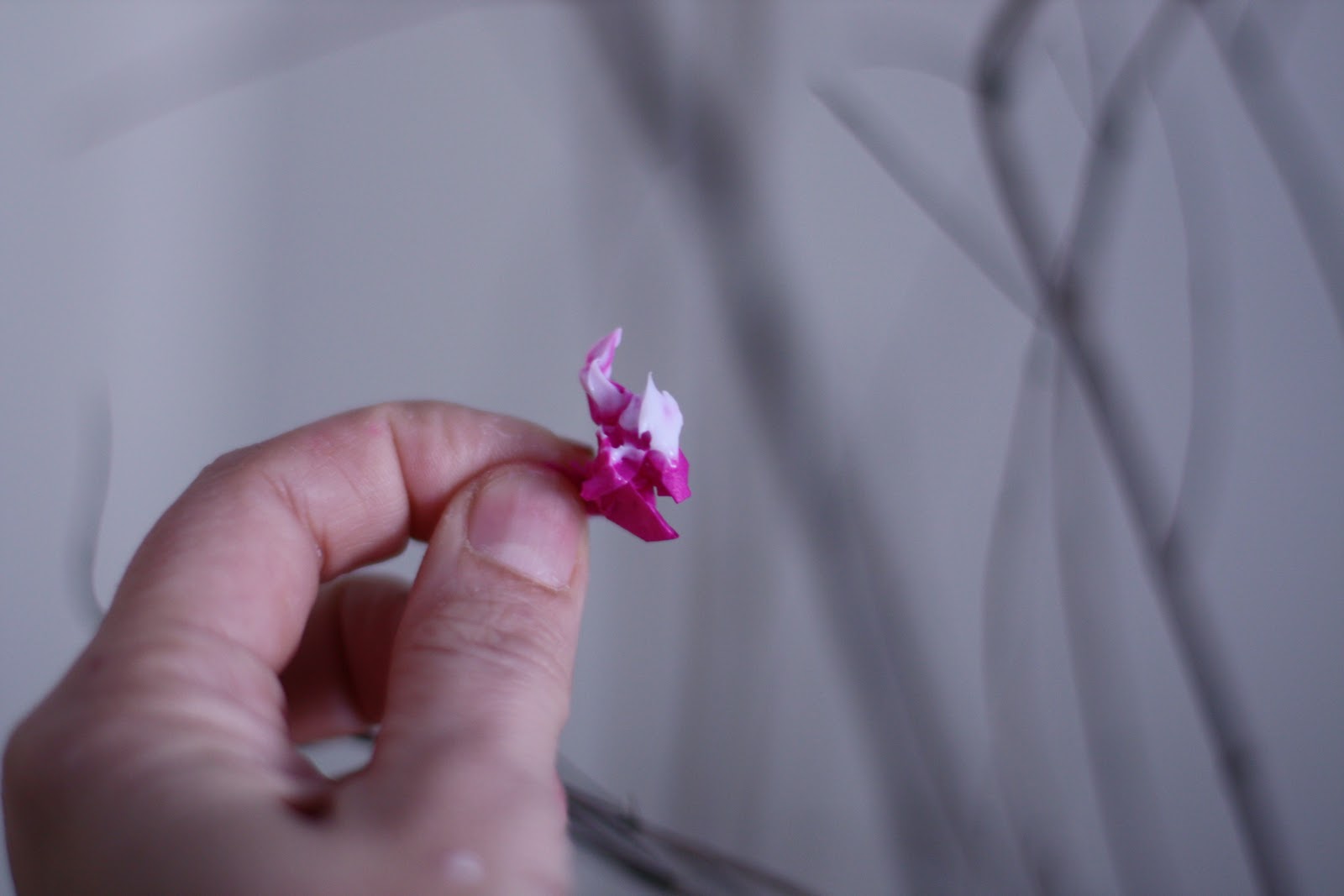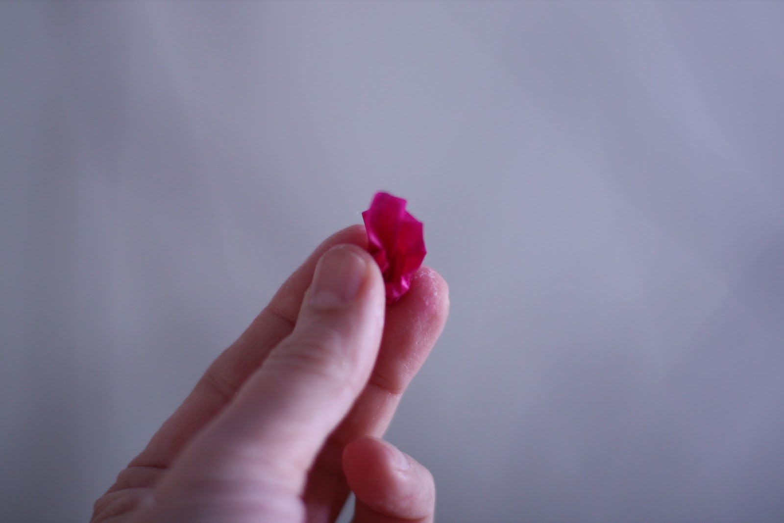 What you will need: heavy gel medium (for the glue), deep pink tissue paper cut into squares, and a tree branch.