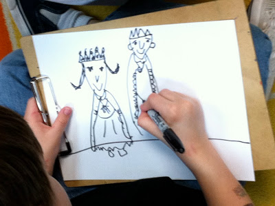 Here are very simple instructions for children to draw a King and a Queen.