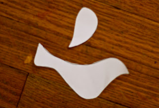 Cut out a bird tracer. It works great to make tracers out of old file folders. Here is a link to a pattern I used: bird pattern – this pattern is for sewing but I used as a tracer.