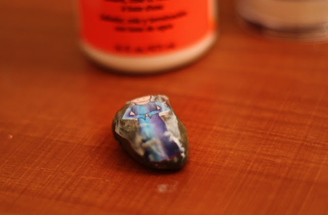 One mistake I made was getting the modge podge too thick on some of the stones. This would spot the image.