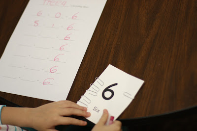 - I printed up cardstock cards with the number and number word. Here's what I made in google docs – Number Cards and Recording Sheets