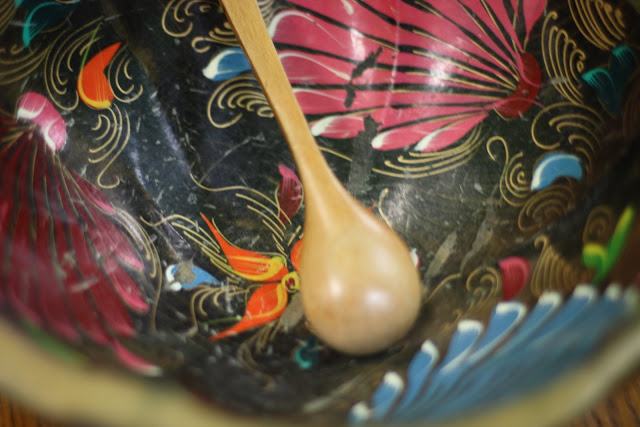 Nesting dolls and hand-painted wooden bowls are a wonderful find to add to housekeeping. I like to mix cultures sometimes to give a global atmosphere. I also buy little wooden spoons.