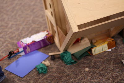 “Do you think we had real leprechauns?” one child inquired. Another child responded, “No. There is no such thing as a leprechaun, remember?” Yet another child searched the room for the trap they had built. Picking up their squished trap under the dollhouse, this little girl asked me, “I liked making a trap. Can we pretend to be catching leprechauns again? I want to build a trap with jewels this time. ” A group of children built traps again that afternoon. At free choice, several children pretended to be “leprechauns” and the housekeeping was “messed-up.” One child, a leprechaun, was caught by the trap another child built in blocks. It had “teeth” like a bear trap made with the triangular blocks.