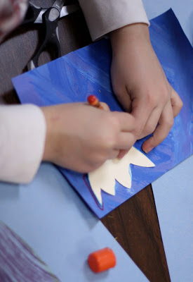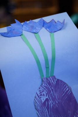 In my previous post, I shared how I love painted (monoprint) papers. Here is one of the projects my class is creating with the papers. This is a simple project that my students managed without assistance.