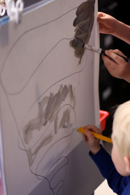 Two children painting a tornado. (Hope we never choose this one. . .)