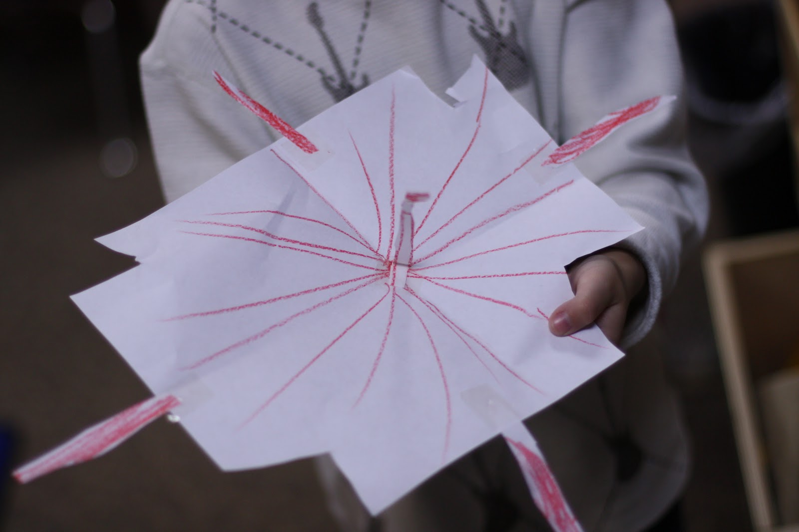 It is astonishing what children can create with a simple piece of paper, scissors, staplers and a little glue or tape. It is such a dynamic way for children to use their creativity. I put out paper and let the ideas and creation begin. At the beginning of the year the children just draw. By now, the scissors and glue are standard!