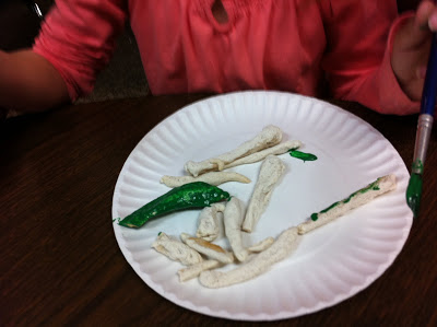 STEP ONE:  We made bread ornament dough and gave it to the children to form their vegetables.