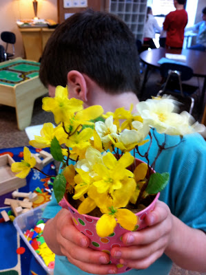 I loved how this group of boys collaborated on the creation of flowers in buckets.