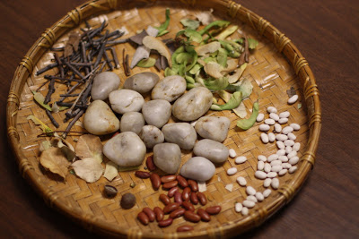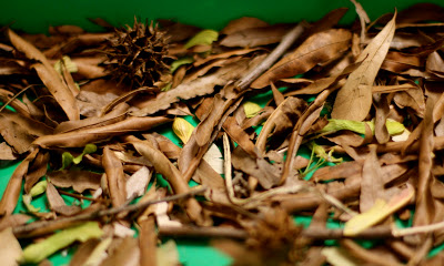 This is a tray of found materials (from my morning walk) to use in habitat making.