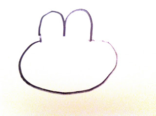 Step Three: Add two ovals for eyes with black dots. Add eye brows and a mouth.