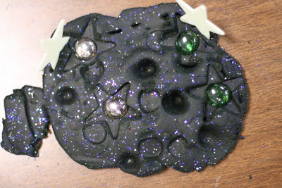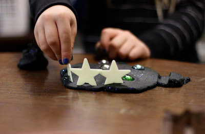 I put glitter on the table for the children to push into the playdough – creating the galaxy!