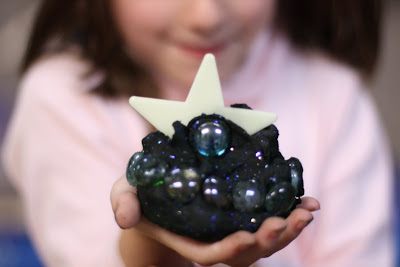 We added some glass glow in the dark moon rocks and stars and an astronaut figurine to each.