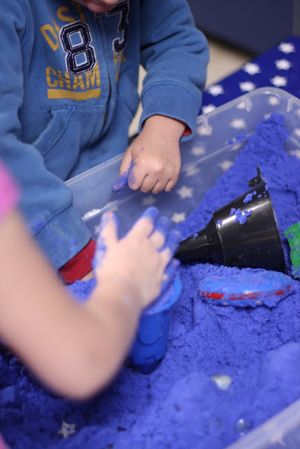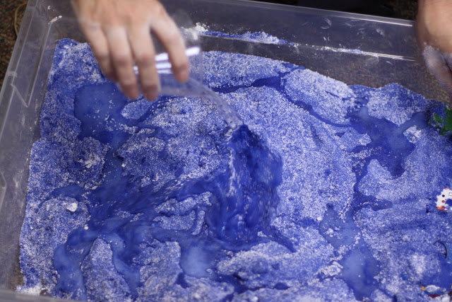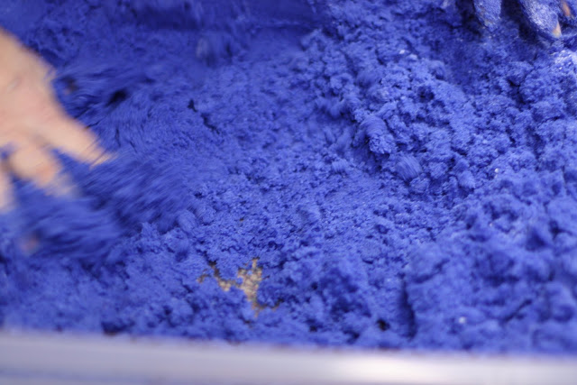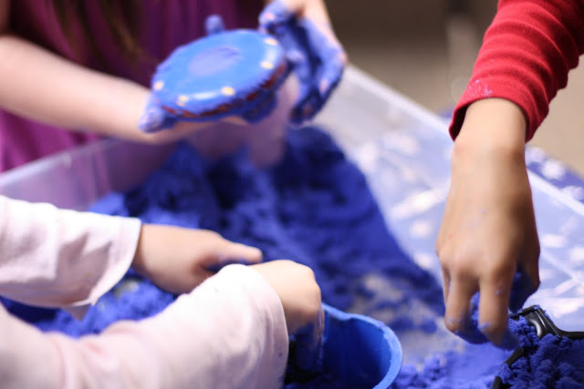 FYI – for the batch I took photos of – I did not have enough cornstarch. It did not matter! It was still great moon sand. It is not an exact science!