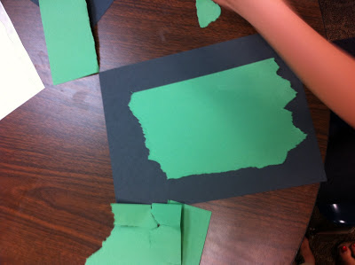 STEP ONE: Tear the green paper to create a head for your alien. Whatever shape you get is just RIGHT!