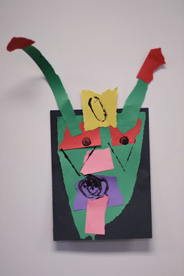 STEP THREE: Tear other colored papers to create eyes, nose, mouth, antennae, whatever!