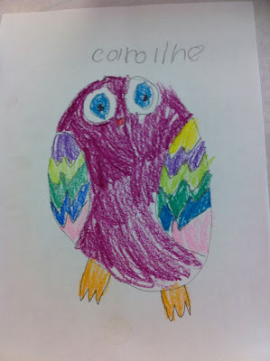 This week (and next) I am teaching at Philbrook Museum Art Camp. One of my co-workers, Aubree, lead the children in this wonderful drawing of an owl. Isn't it cute?!