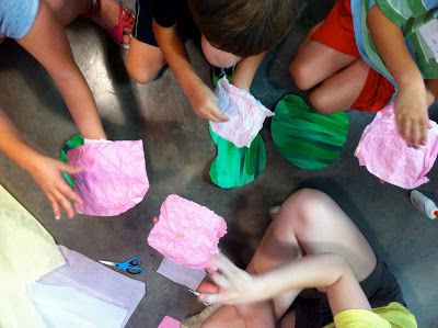 Step Five: They pinched the middle to create the flower and glued it on to the lily pads.