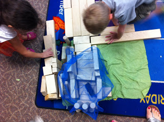 It always seems like there’s something special happening at blocks! Yesterday for indoor recess (due to heat index!) 4 of my students collaborated to build a petting zoo for the farm animal manipulatives. They then charged admission to the interlocking gingerbread people and with each additional gingerbread they crowed about how they were making more and more money! It was priceless for me to see their imaginations at work! I love your idea of using the fabric – I will have to add some to my block center and see what happens!