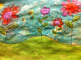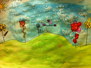 It is the fourth day of school tomorrow and I am crazy busy!  So I am posting more photos from summer art camp.  These turned out so lovely in person.  The iphone photos do not do them justice!  I had the children draw with sharpies, paint and then sprinkle salt on the wet paint.  The texture from the salt sprinkling was divine!