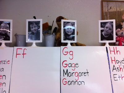 I have a chart paper with everyone's name on my front white board. It is our “reference” sheet for names.