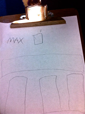 Student drawing his “plans” for block building.