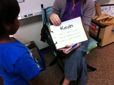 I typed up the sheet we used before hand (click here for a copy). Then each child came to the front of the group and did that day's name task. I like sending the book home as it gives a great tool for families to practice these essential skills. A student can go through the book and count how many letters in all their friend's names and so forth.