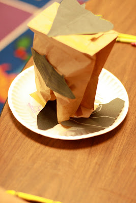 Making habitats is one of my favorite projects for the children. They love it too! What you will need: brown bags, cheap paper plates, black construction paper, scissors, glue stick, crayons.