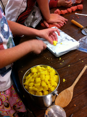 During the Little Red Hen unit – I add a wonderful selection of pans, bowls, buckets, muffin tins, plates. . . even a cheese slicer. The boys love that slicer!