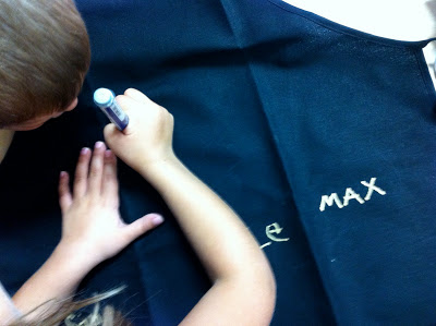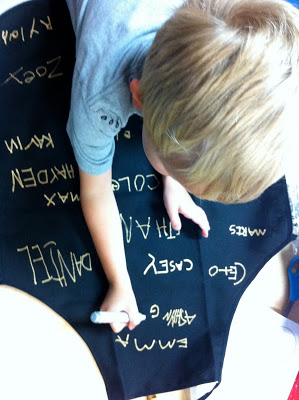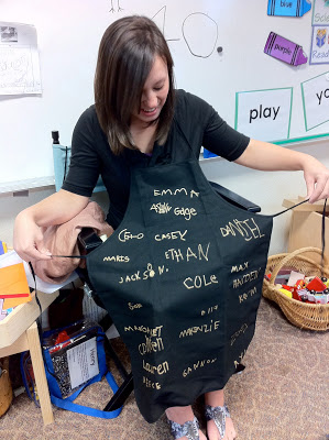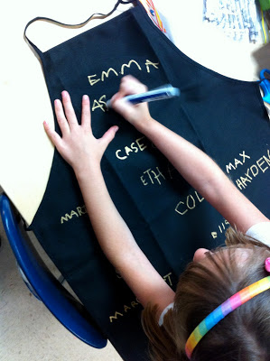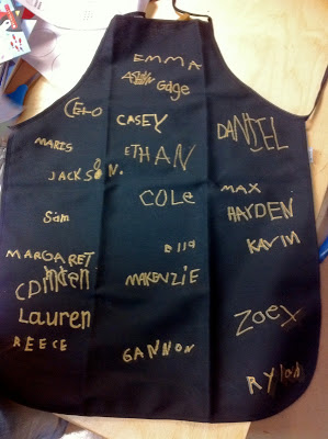 When my latest intern's last day was near, I wanted to do something special. Stephanie is one of those people who really adores the children. For real. I just knew she would be like me and want something that had the touch of the children. I also wanted it to endure – so it couldn't be white! I decided on a black apron and had the children sign it with a Sharpie gold paint pen. It was so simple and yet elegant. Loved it!