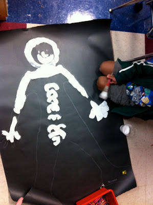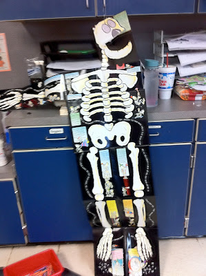 I saw this project at my friend, Terri's classroom several years back. It is such a great way to introduce the bones. I had two parents come in and help the children paint their bones. We will be learning the major bones over the next two weeks.