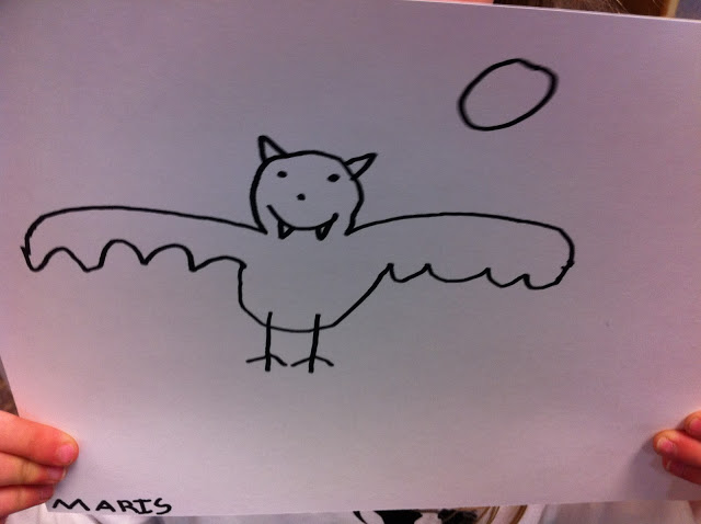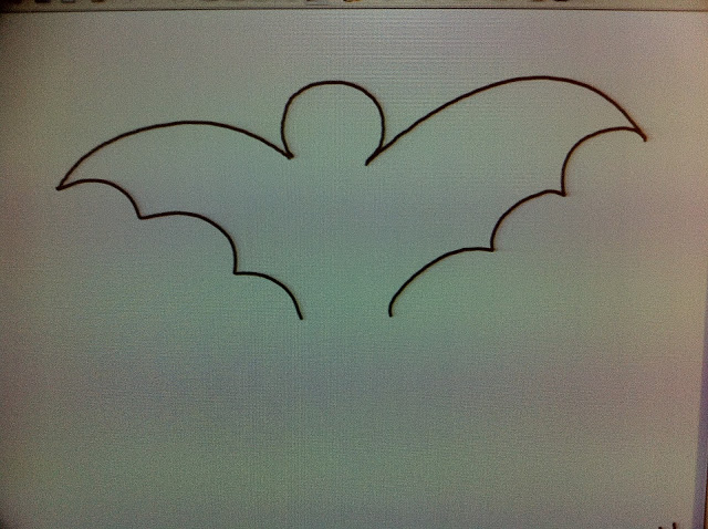 Draw dots and curve lines for eyes, a u shape for the mouth and triangles for the fangs and ears.