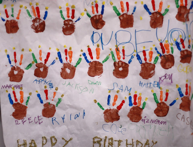 My students made this adorable sign using their hand prints to make cupcakes with candles!