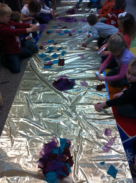 The children glued on squares of construction paper.