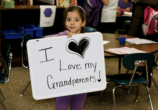 Okay – I know I have been on Pinterest too much when I am thinking “hand held white board messages.” But honestly, it was a grand idea for Grandparent's day. What I loved about it was that those children who did not have grandparents still had a cute photo opt that we could send home. Well – back to Pinterest for more inspiration. . .