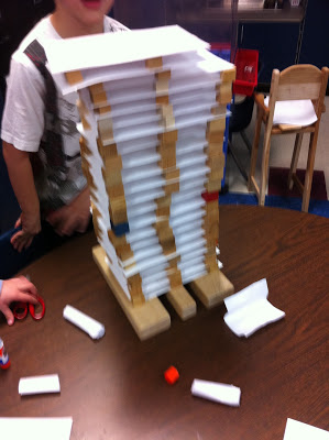 The tallest skyscraper built was 21 floors. The students realized that the stronger buildings (ones that did not fall over) had more supports. Balance was an important factor as well!