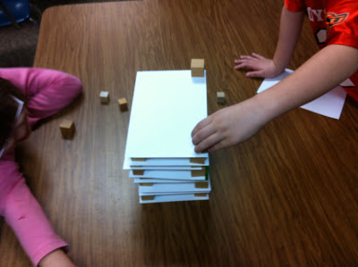Next, I gave each color family (four students in each group) cardstock and blocks to build skyscrapers. They had to have floors to their buildings.