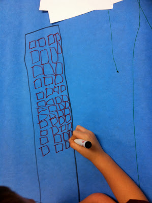 This week my kinders are diving into a study of buildings – primarily skyscrapers. Today I explained that skyscrapers have four main parts – the foundation, the beams (skeleton), stories, and facade. I played a few youtube videos of New York's skyline as well.