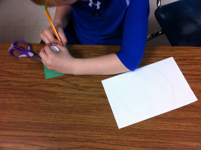 On the white paper, draw the “whites” of the egg by making a curvy line all the way around the edge of the paper. I told the children to keep close to the edge or it will not be big enough to write on!
