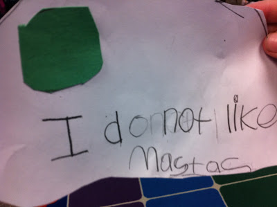 I wrote the sentence “I do not like” on the board for the children to copy.