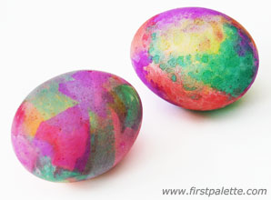 This is one of my favorite ways of having children decorate an Easter Egg. It is easy and the results stunning! It only requires crepe paper. For instructions go to First Palette.